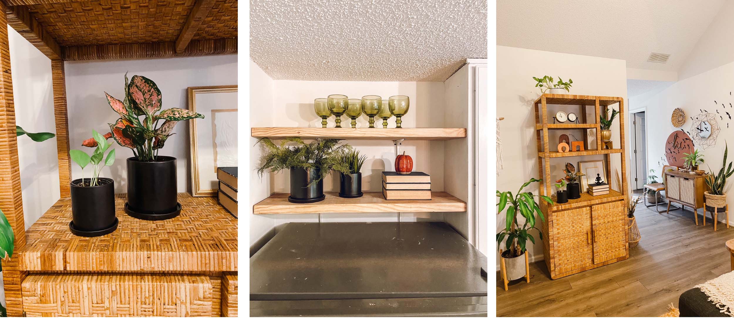 I love them sitting on my thrifted wicker shelf and also on my Easy Open Shelving by my vintage books and goblets. Mixing modern and vintage gives such a cool vibe.