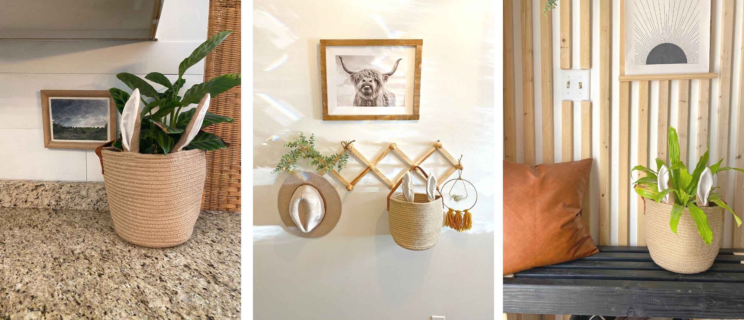 This little bunny ears basket set would not only be perfect for your little ones Easter baskets, but makes the sweetest little Spring plant basket or towel holder.
