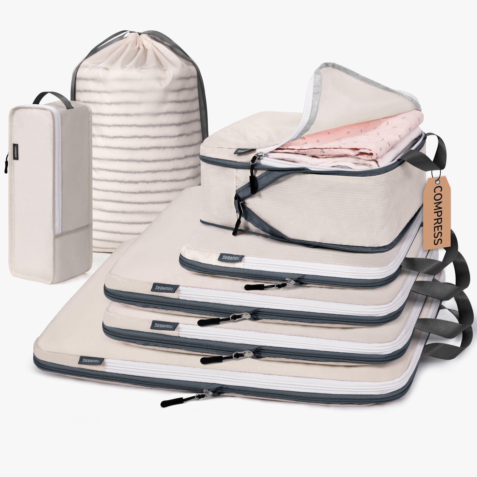 Expand Luggage Space: The durable zipper compression system of the packing cubes will help you compress clothes easily, saving up to 50% of space. These organizers not only maximize luggage space but also minimize wrinkles, ensuring a hassle-free travel experience