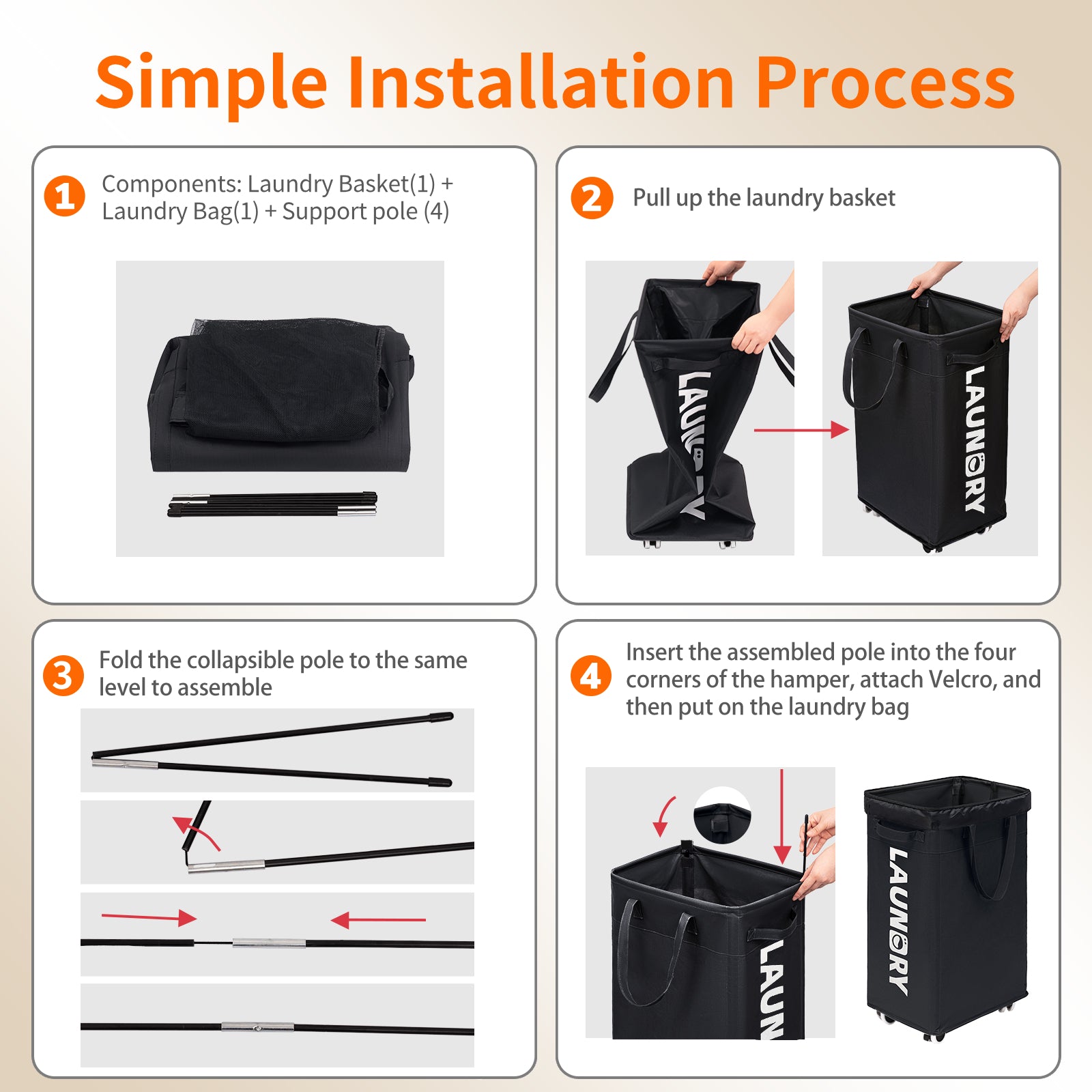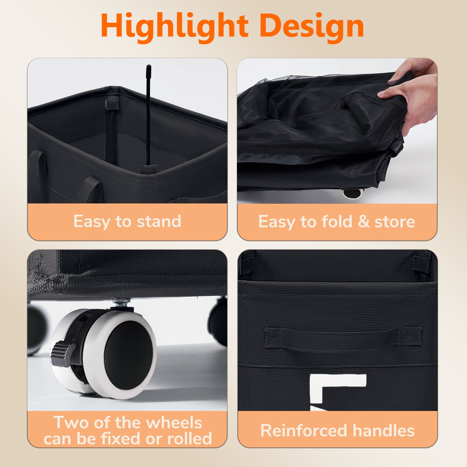 TIMEYARD 75L Rolling Laundry Hamper with Wheels and Removable Mesh Bag, Dirty Clothes hamper for Dorm Room Essentials, Black