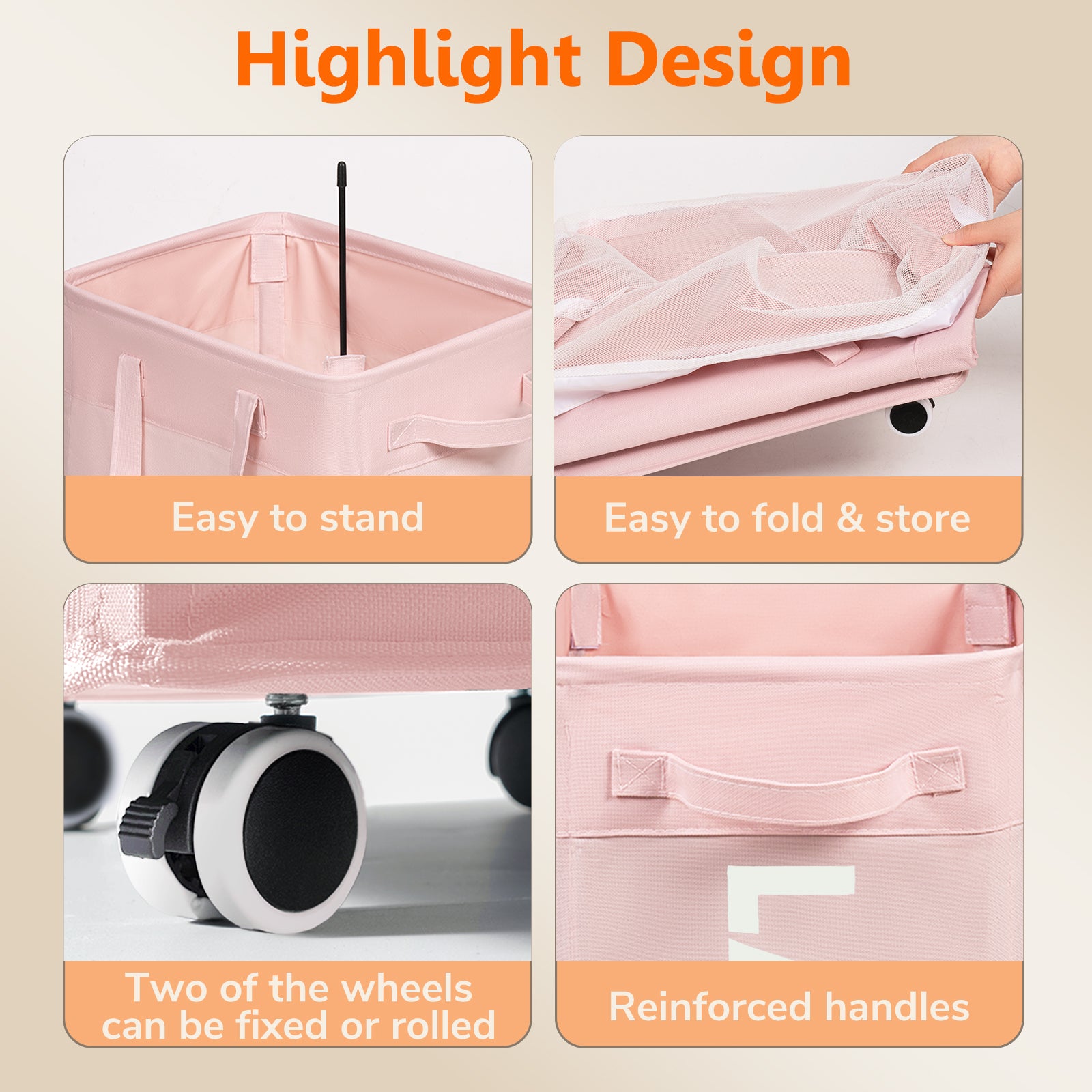 【Roller Design & Removable Mesh Bag】This laundry hamper is equipped with 4 smooth rolling wheels, 2 of which have brakes for easy movement and locking. The mesh bag is easy to pull out and carry, you can take out all your clothe and simply lift out the mesh bag, carry it to the washing machine. The handle is designed at a convenient height, saving you from bending over during movement