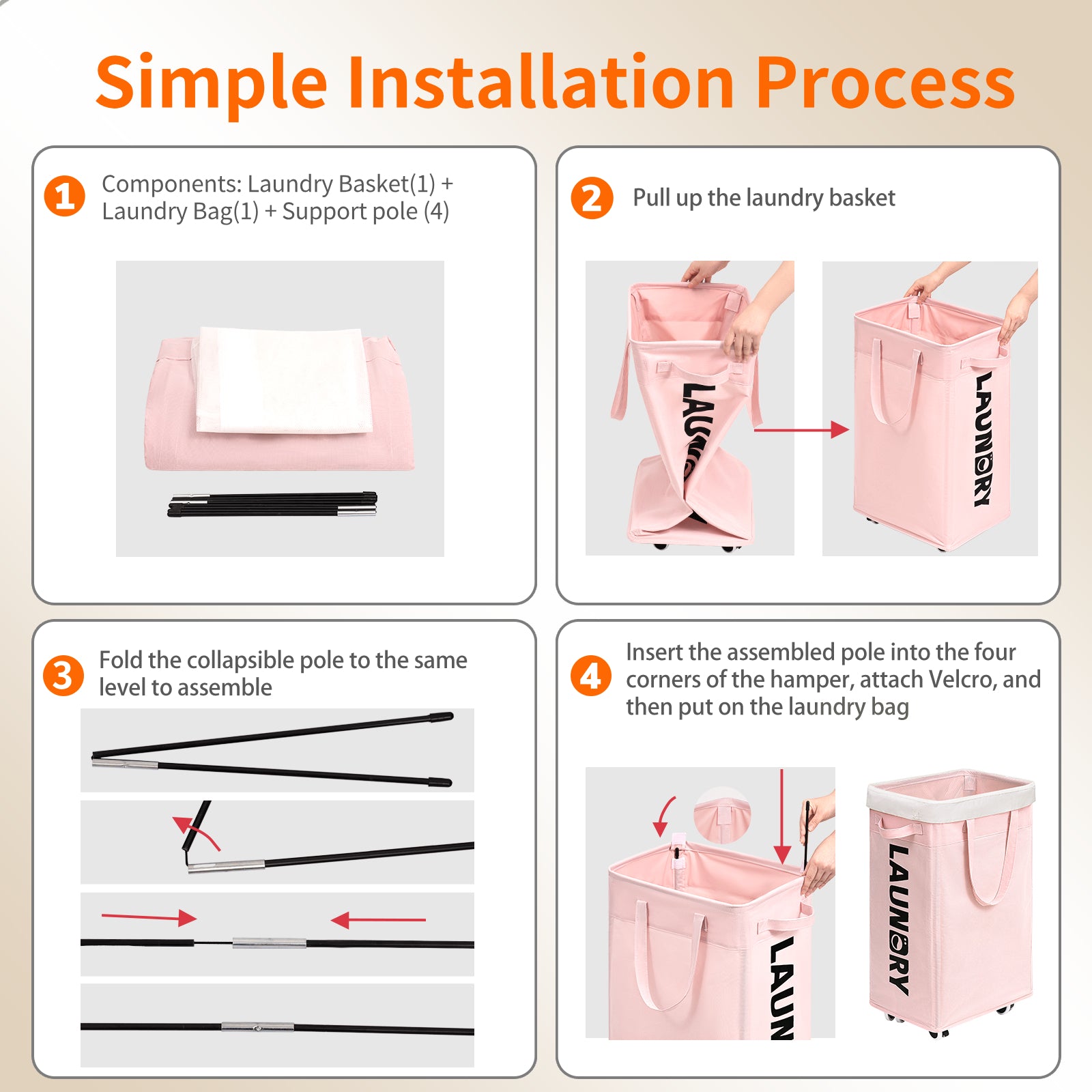 【Care Instructions】To keep the laundry bin in top condition, avoid using a washer or dryer to clean it. Instead, simply wipe it down with a damp cloth. This simple action will help preserve the coating and wheels for long-lasting use