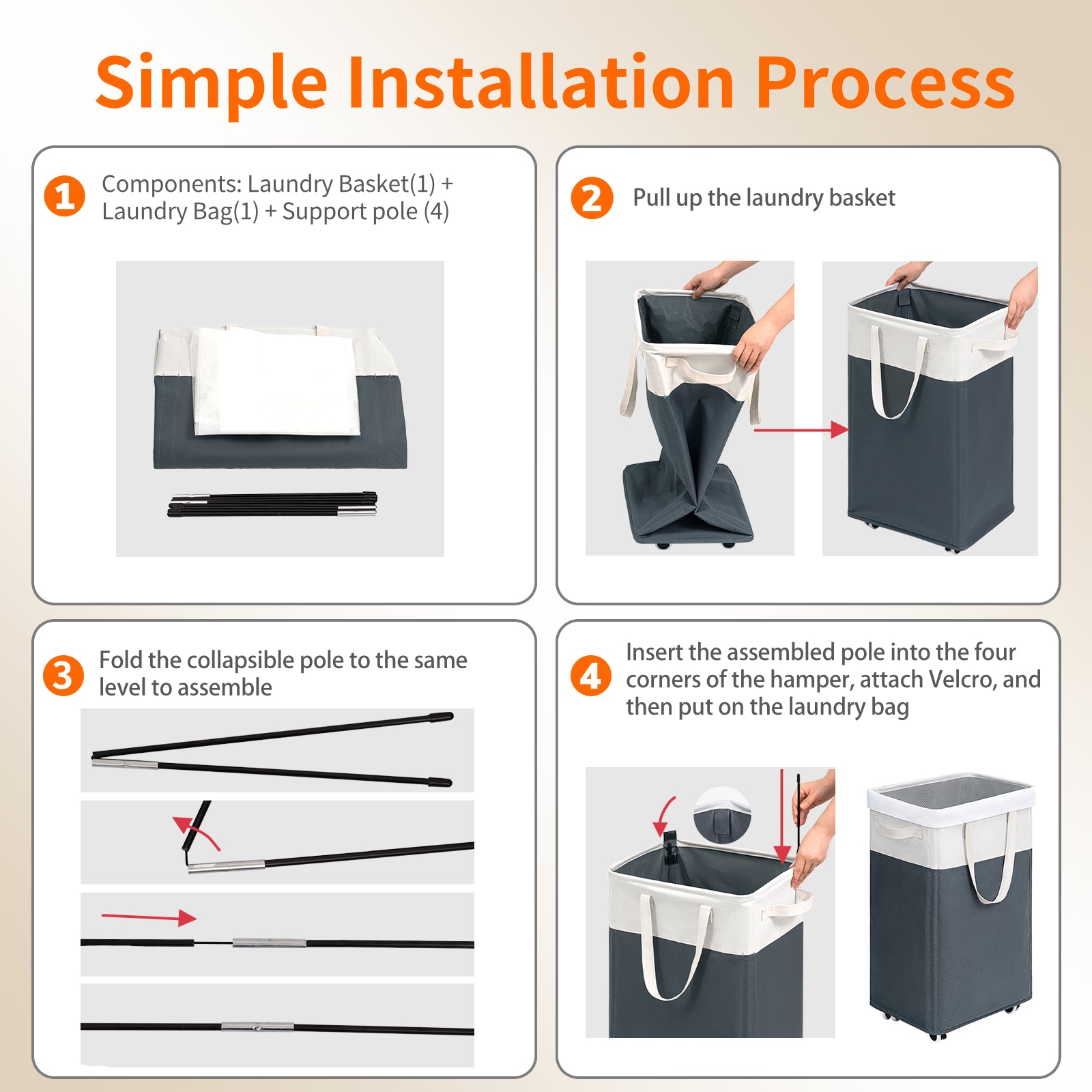 TIMEYARD 75L Rolling Laundry Hamper with Wheels and Removable Wash Bag, Tall Collapsible Large Laundry Basket with Wheels, White & Grey