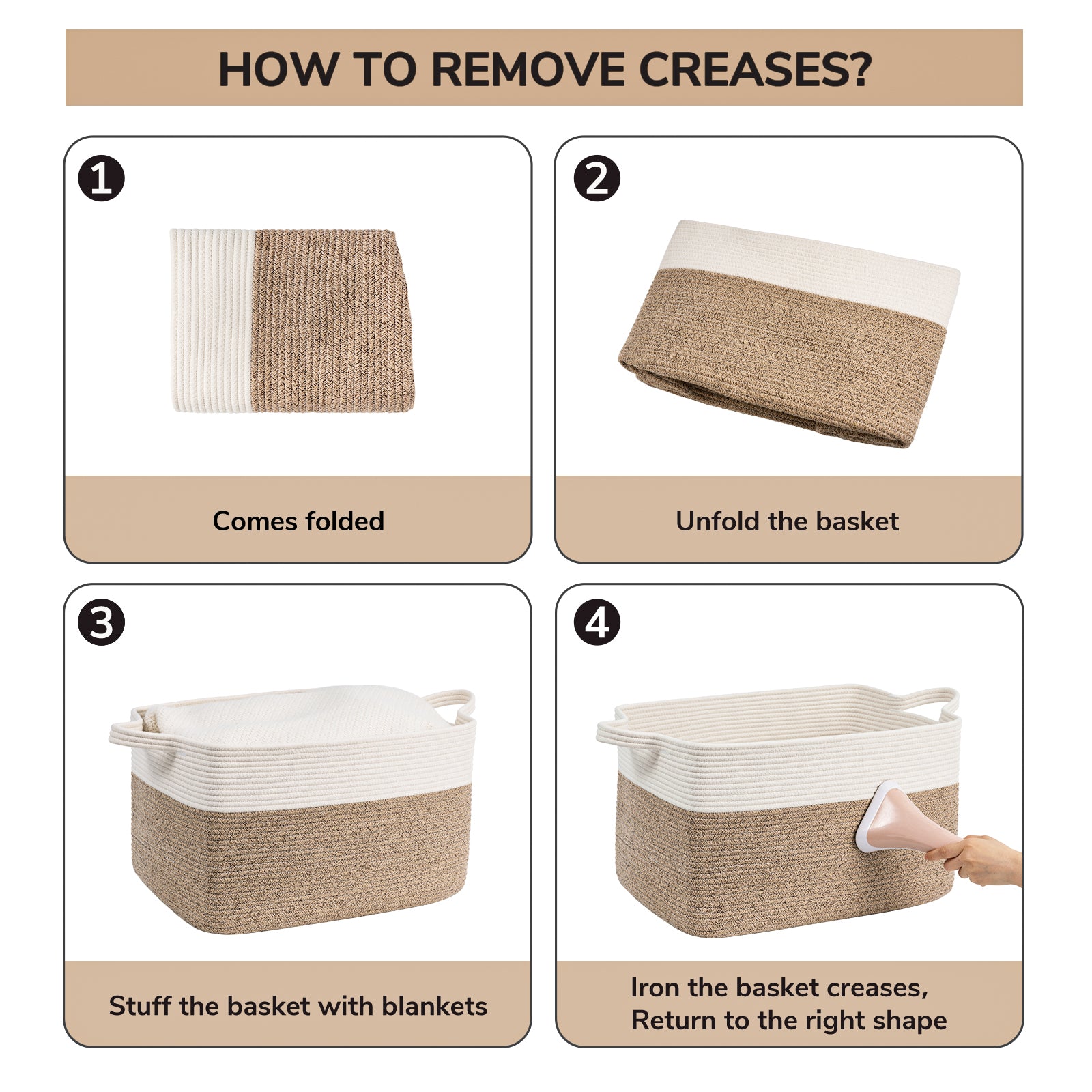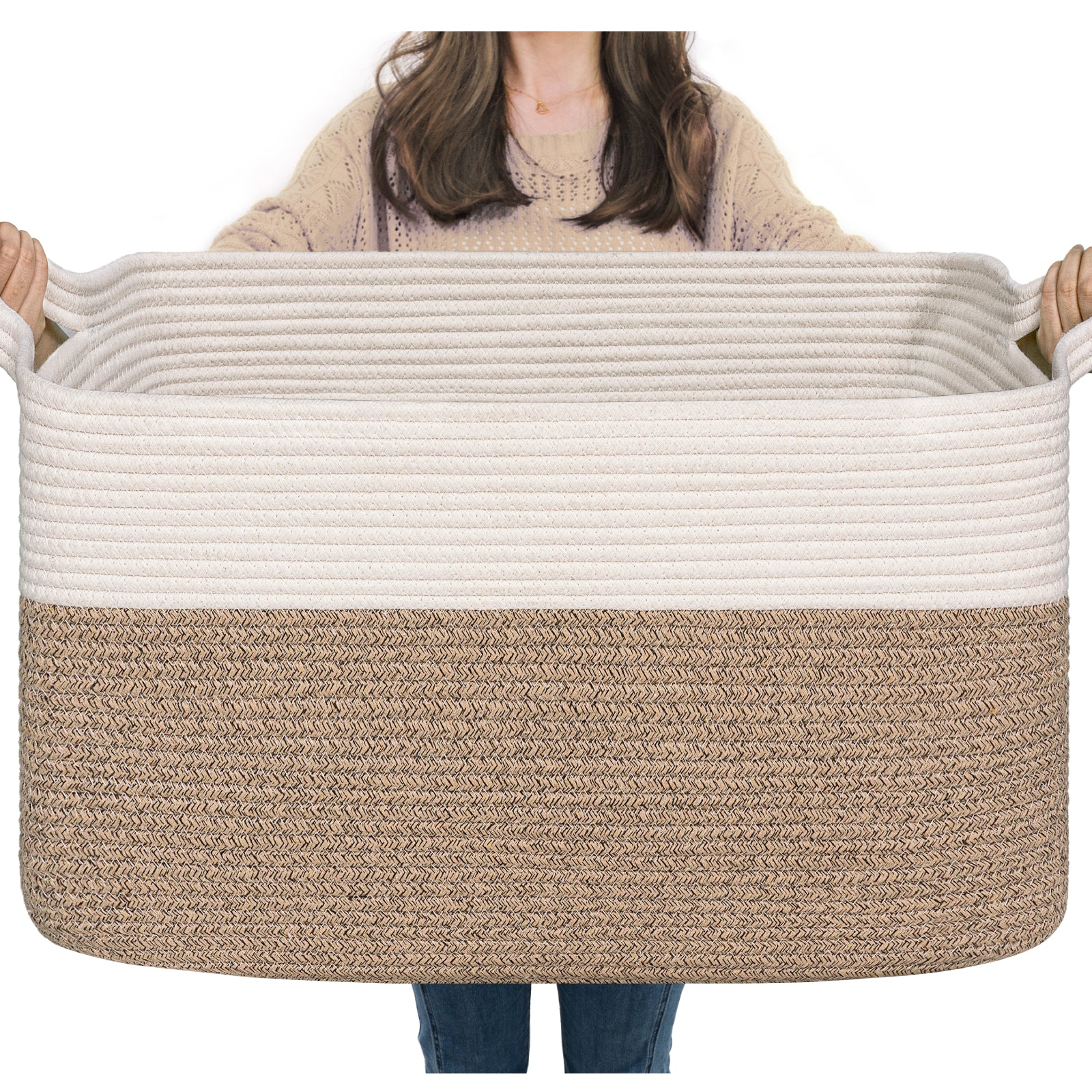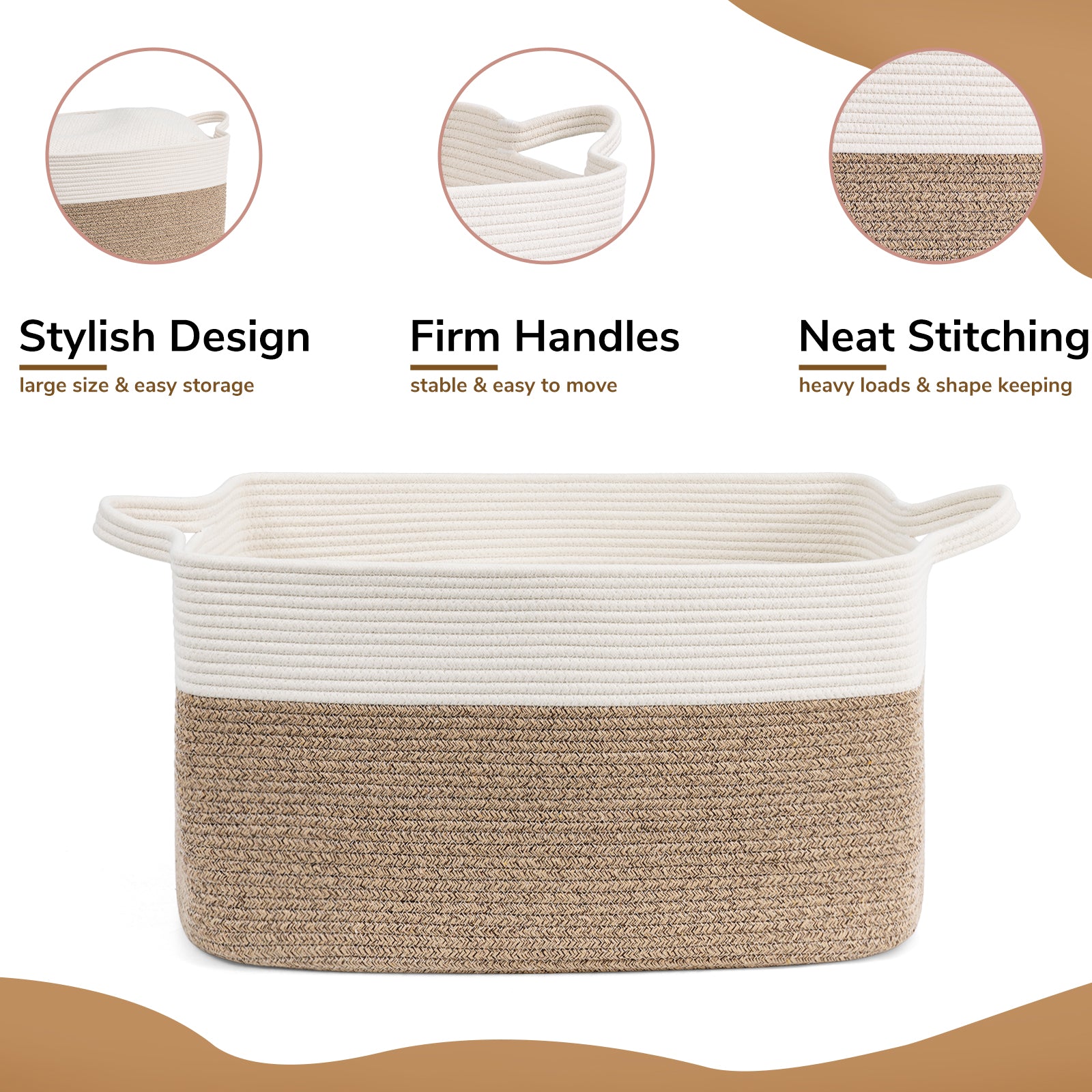 TIMEYARD Large Blanket Basket, 21.6" x 14.9" x 11.8" Rectangle Woven Baskets for Storage-White & Light Brown